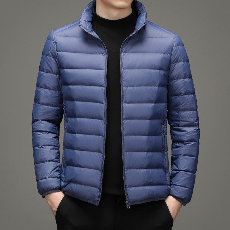 Мужская легкая куртка из хлопка и бархата — короткая, в корейском стиле, тонкая, большого размера, зимняя одежда для людей среднего и пожилого возраста. XL темно-синий