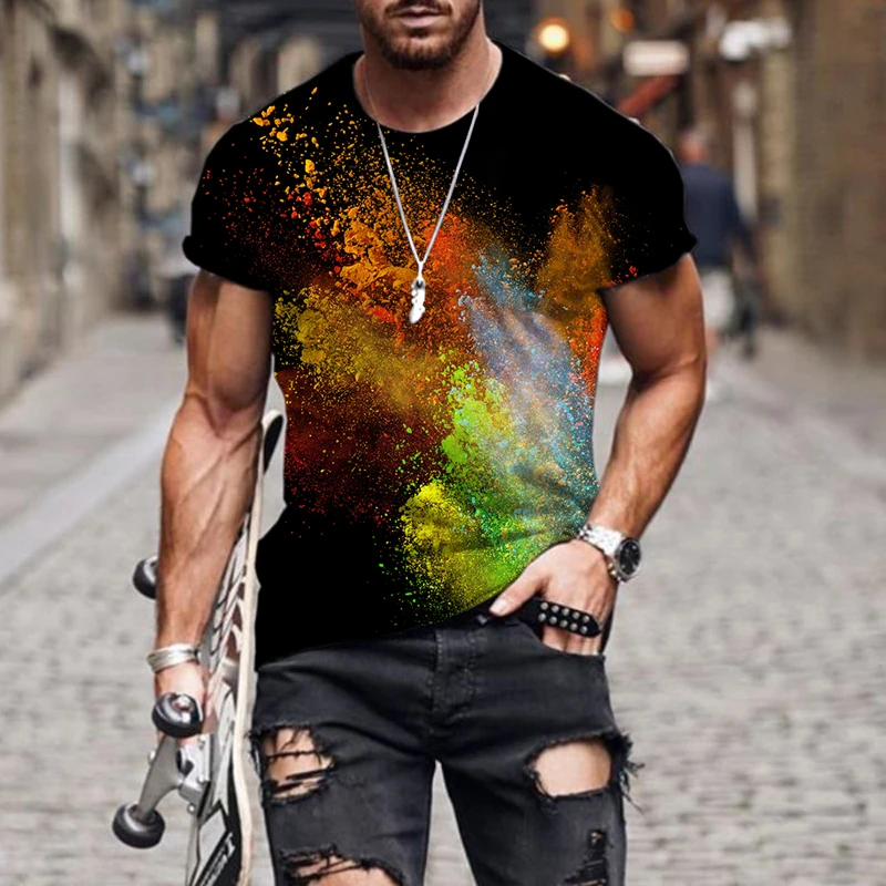 Мужская летняя футболка с разноцветным принтом и коротким рукавом, 2022