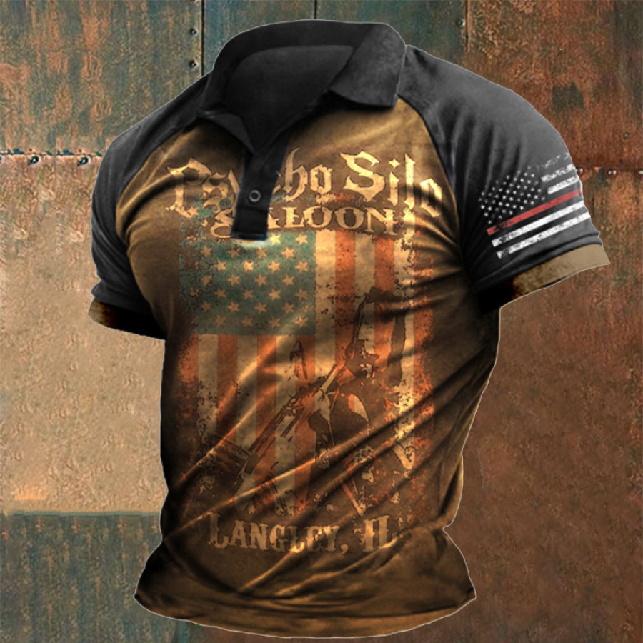 t-shirts,мужская лоскутная рубашка-поло с винтажным принтом американского флага и контрастным принтом