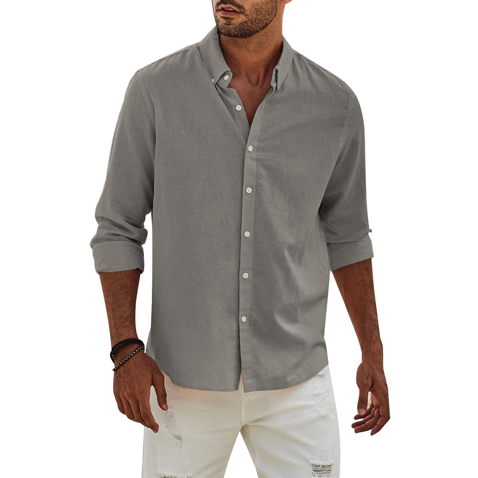 Мужская модная однотонная повседневная футболка с длинным рукавом и пуговицами, рубашка обычного кроя, топ L серый