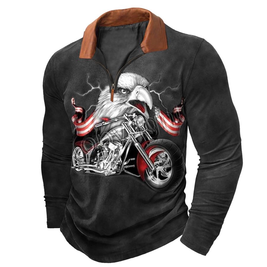 t-shirts,мужская мотоциклетная футболка с орлом на молнии поло в стиле пэчворк кожа с длинным рукавом винтажная уличная футболка с цветными блоками повседневные топы