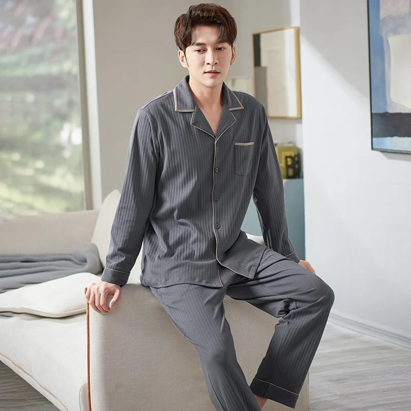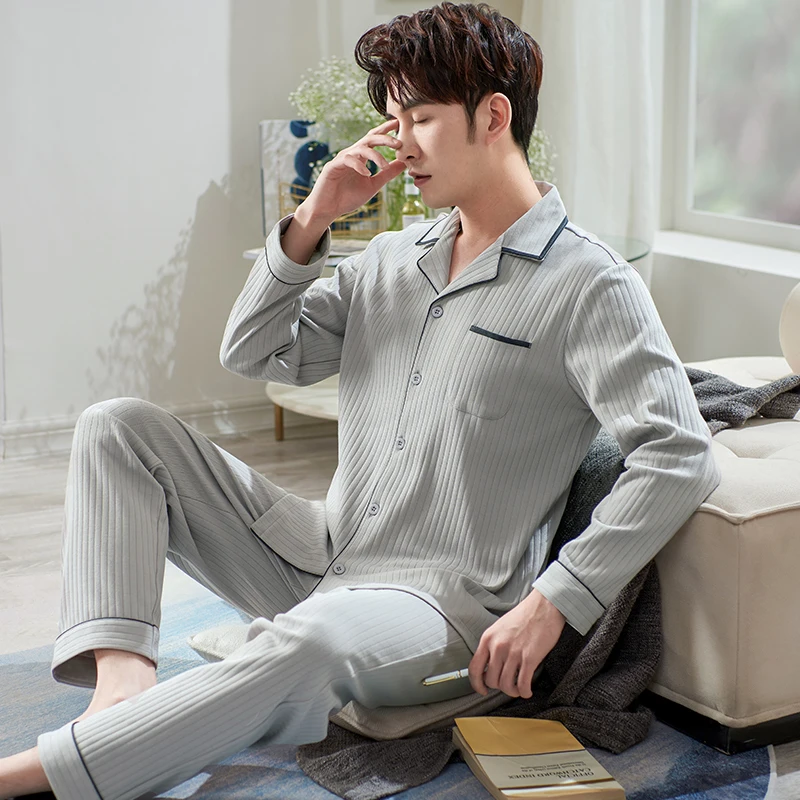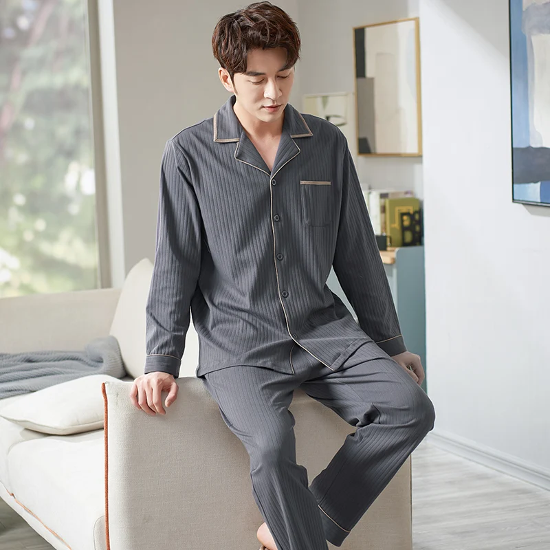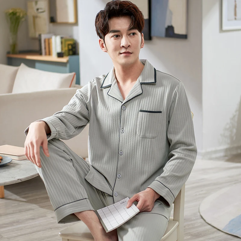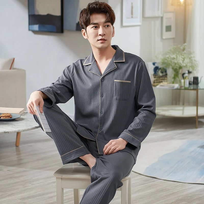 Мужская мягкая Хлопковая пижама с длинным рукавом, размеры до 3XL