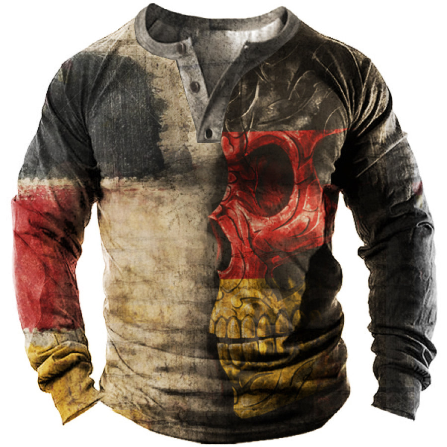 Мужская наружная футболка с немецким флагом и черепом тактическая футболка с воротником Henley