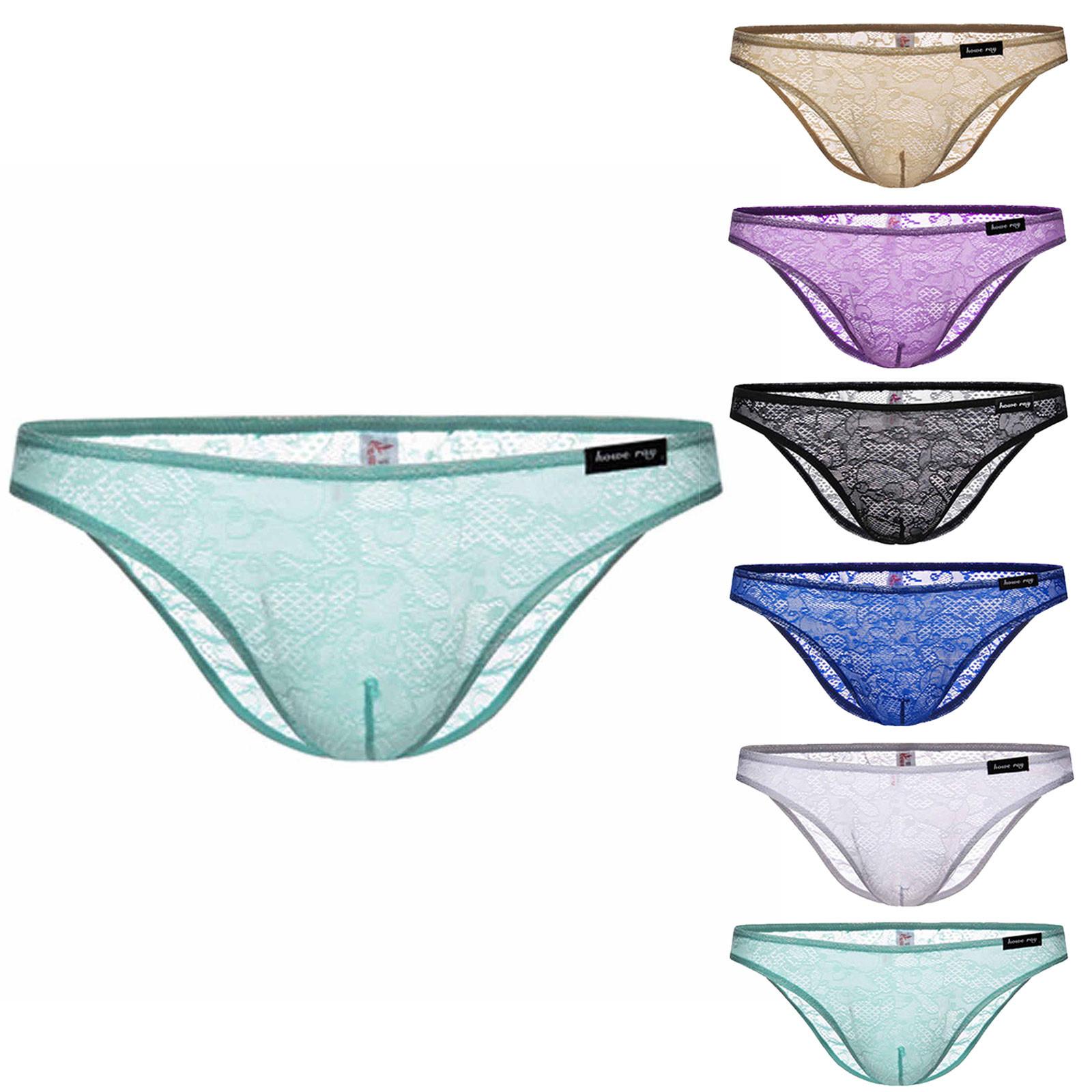 Мужская новая мода Низкая талия Сексуальные кружевные трусы Прозрачные трусы