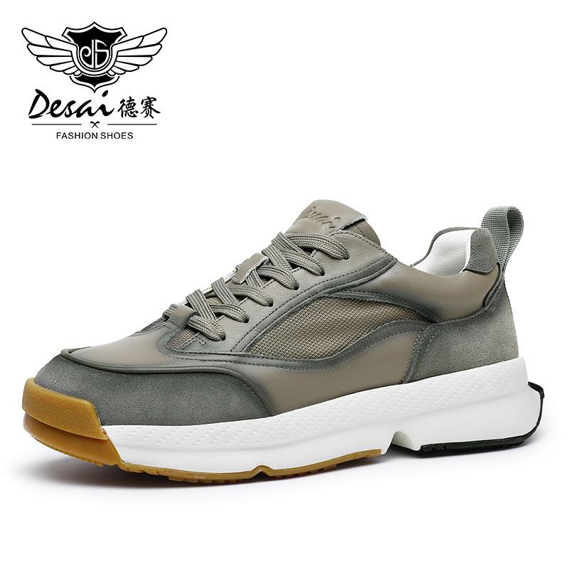 Мужская обувь Модная домашняя обувь Трендовая обувь Универсальная обувь для пап на платформе Амортизирующая дышащая спортивная повседневная обувь Мужская кожаная обувь 44 серый