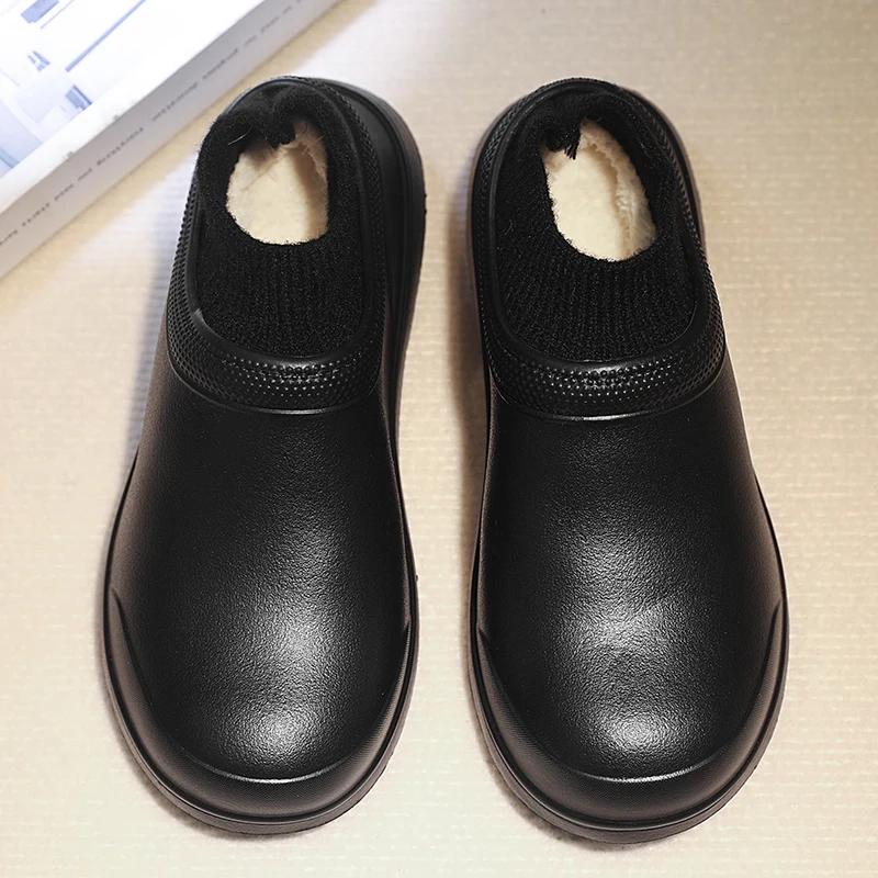 Мужская обувь для шеф-повара на платформе, меховая домашняя обувь из хлопка, мужские тапочки для дома, теплые, без застежек, молодежная мода, уличные сапоги из ЭВА 44-45 чёрный