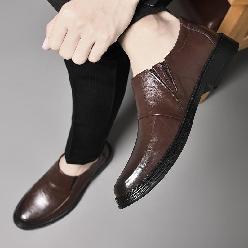 Мужская обувь 2025 лето новая мужская обувь в стиле джентльмена легкая роскошь водонепроницаемая на одной педали легкая с острым носком с увеличением роста повседневная кожаная обувь 44 коричневый