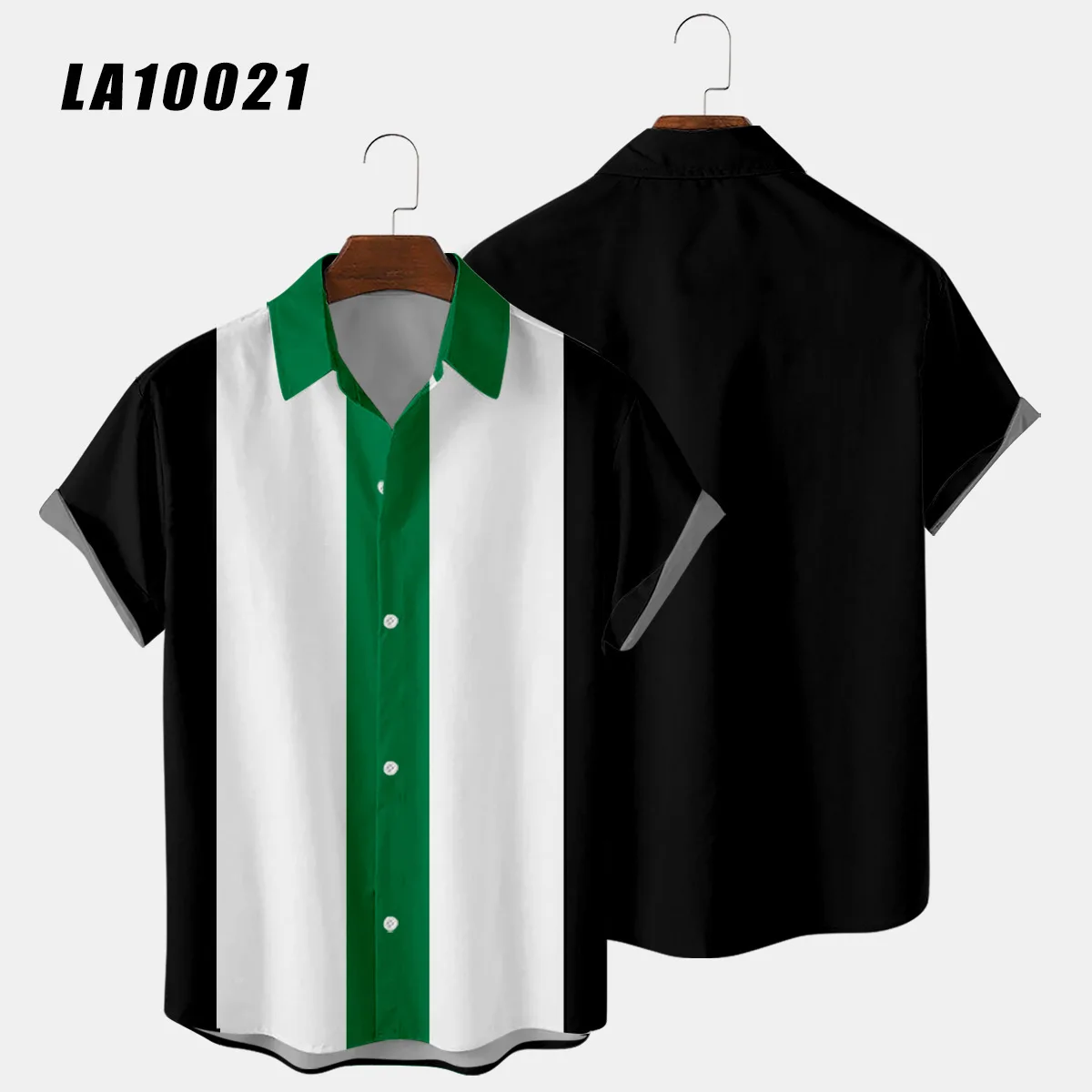 Мужская однобортная рубашка в полоску, с отложным воротником и коротким рукавом