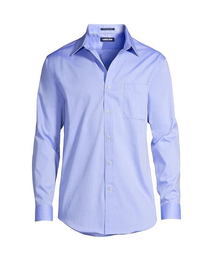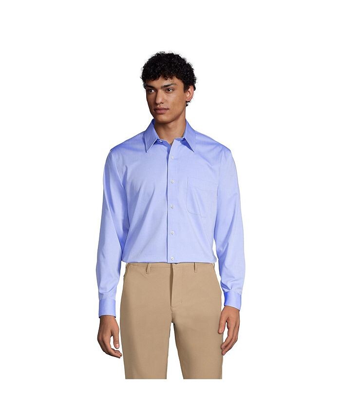 Мужская однотонная классическая рубашка с прямым воротником Supima Pinpoint без железа Lands' End, цвет Light blue