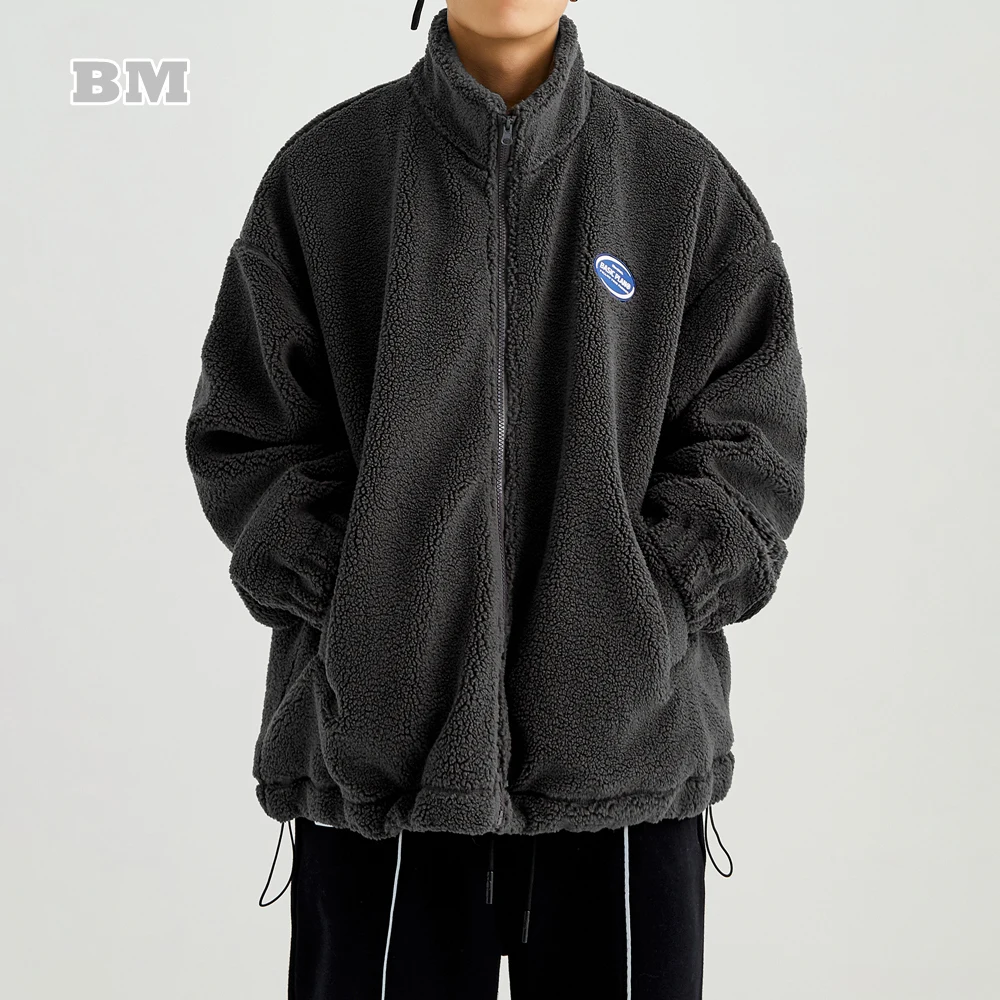 Мужская однотонная куртка из овечьей шерсти, с воротником-стойкой
