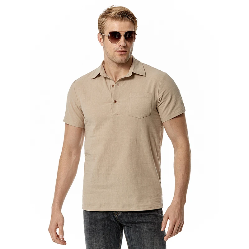 Мужская однотонная пляжная рубашка из хлопка и льна, с отложным воротником и одним карманом, простая модная футболка с коротким рукавом, праздничный подарок