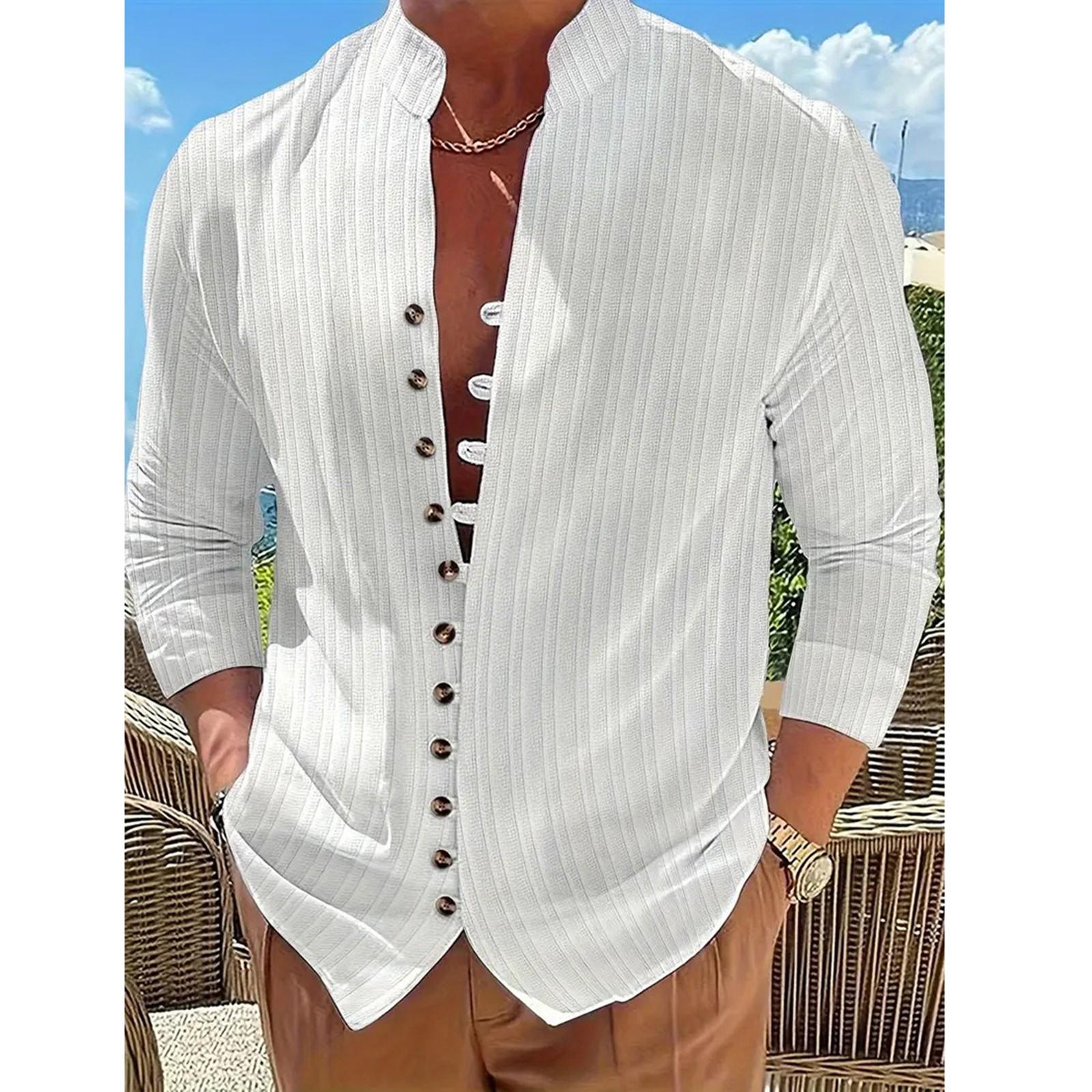 Мужская однотонная повседневная рубашка из хлопка и льна с длинным рукавом на пуговицах S белый