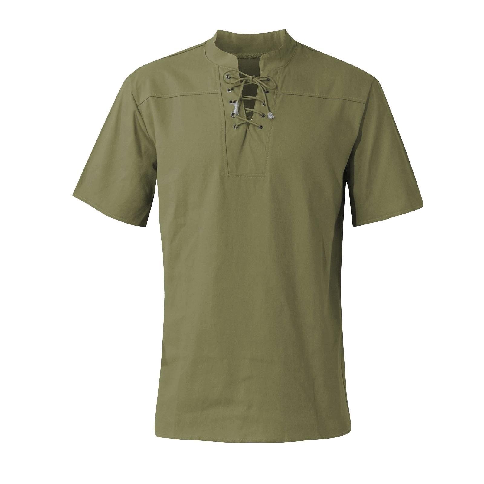 Мужская однотонная повседневная рубашка на шнуровке в стиле ретро с v-образным вырезом и шнурком с короткими рукавами, топ L