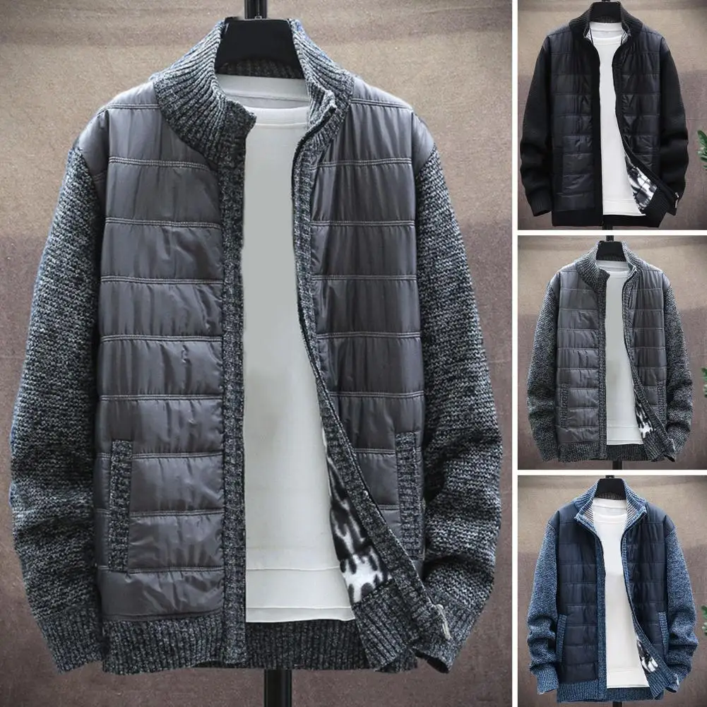 Мужская осенне-зимняя куртка с воротником-стойкой и длинными рукавами