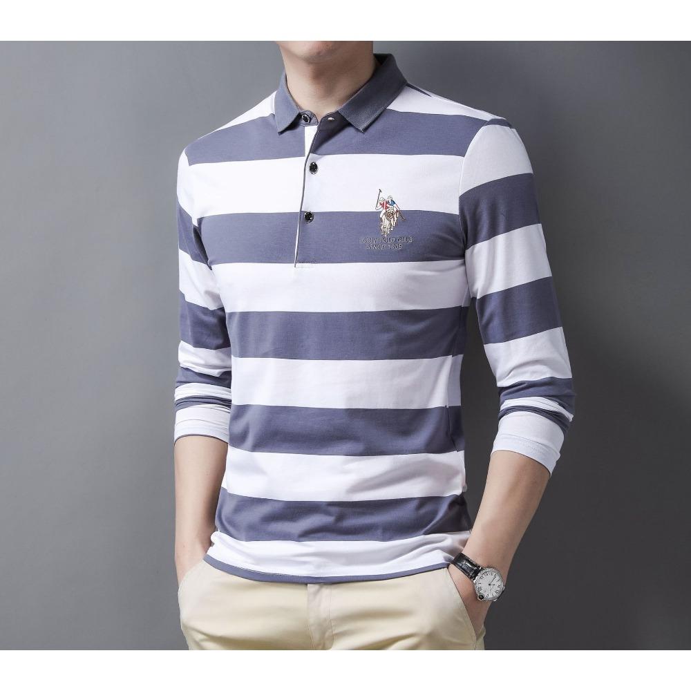 Мужская осенняя новая футболка с длинными рукавами, мужская повседневная корейская версия, модная полосатая деловая рубашка-поло с лацканами 4XL