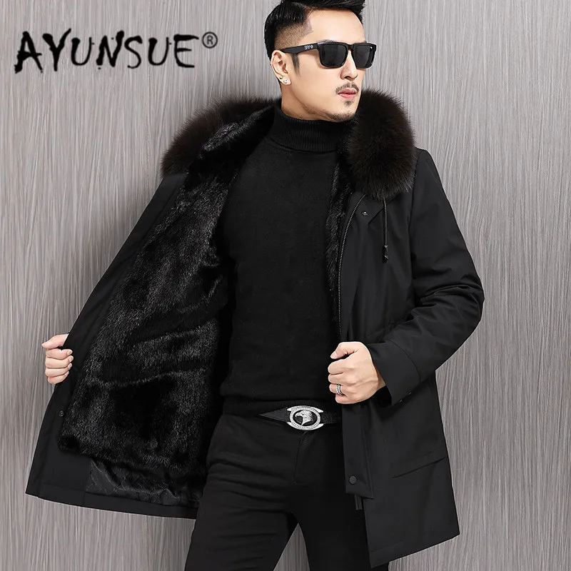 Мужская парка AYUNSUE с воротником из лисьего меха, зимняя теплая парка с норковой подкладкой, шуба 26-9817173 YY322