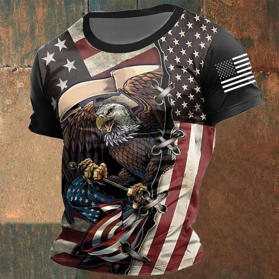 t-shirts,мужская повседневная винтажная футболка с коротким рукавом с круглым вырезом и американским флагом eagle