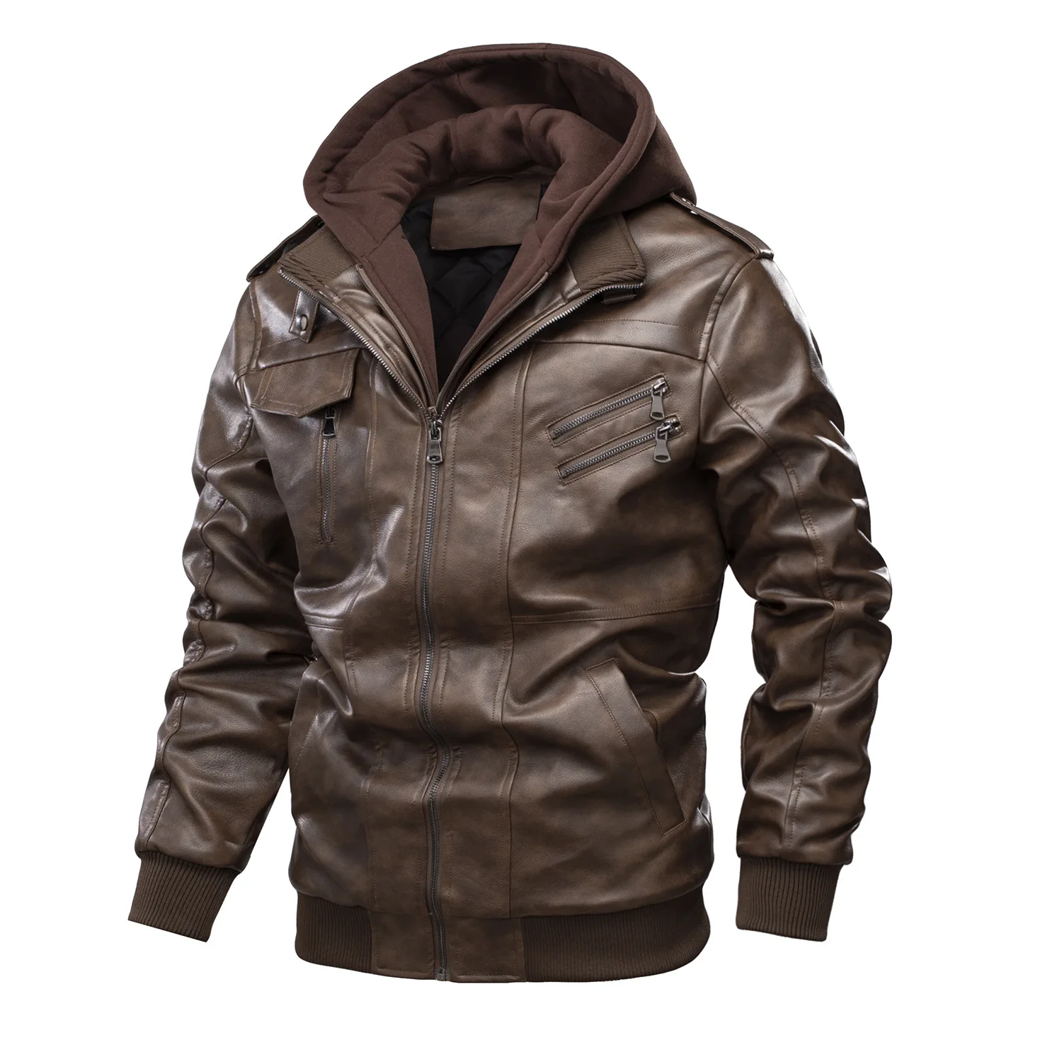 Мужская повседневная мотоциклетная куртка из искусственной кожи, утепленная куртка большого размера со съемным капюшоном