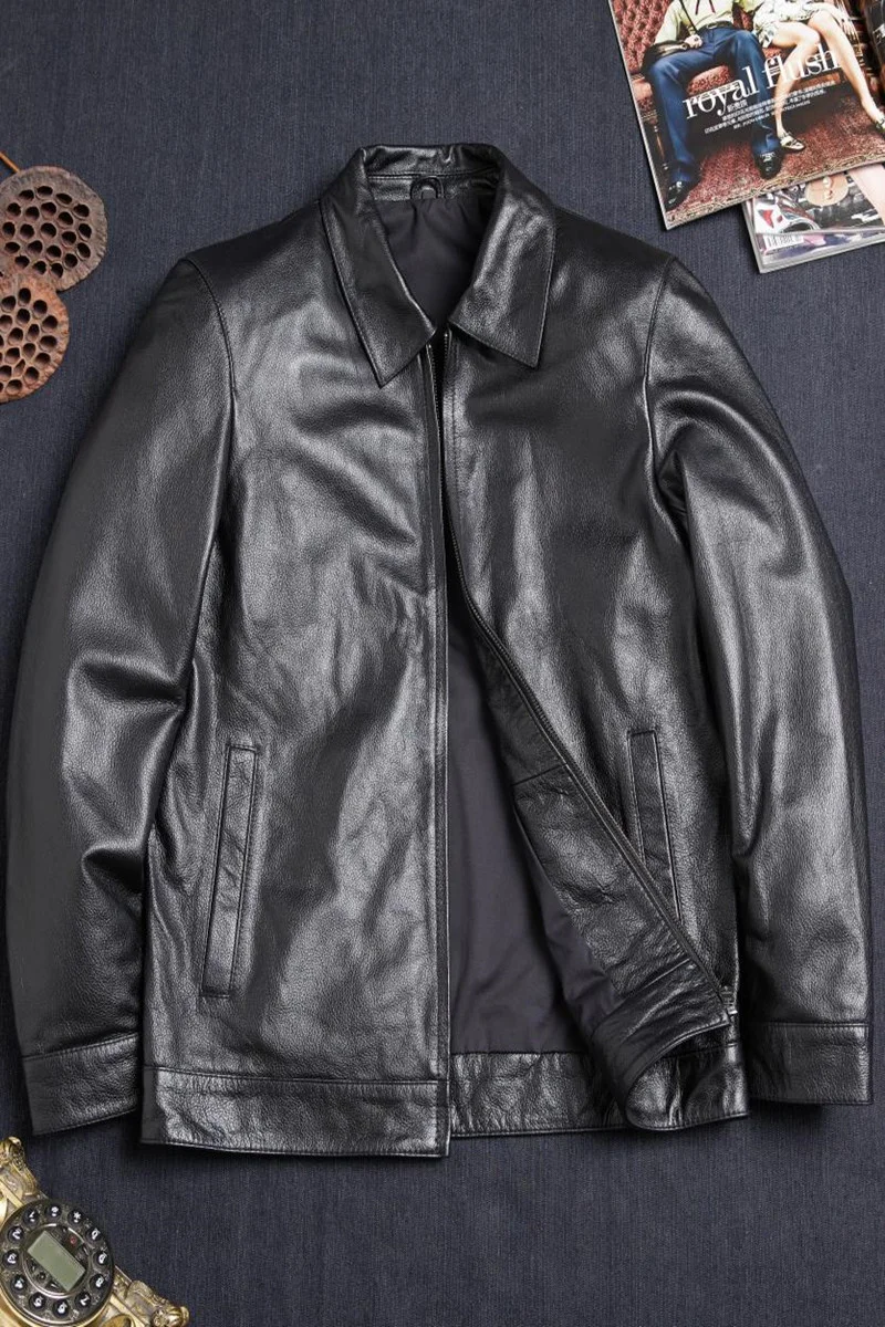 Мужская приталенная куртка из мягкой телячьей кожи, с хлопковой подкладкой