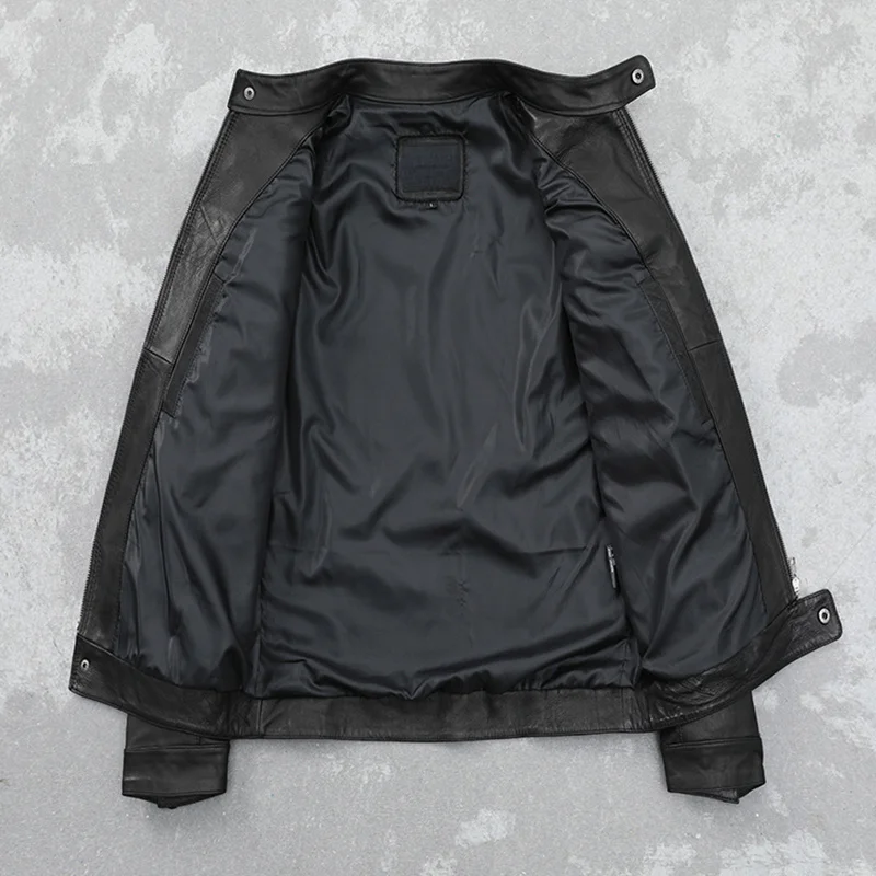 Мужская приталенная куртка из натуральной овечьей кожи, с воротником-стойкой