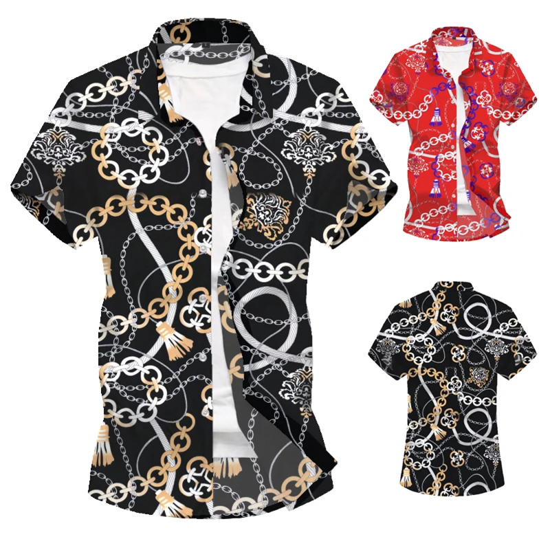 Мужская приталенная пляжная рубашка с цветочным принтом, с коротким рукавом