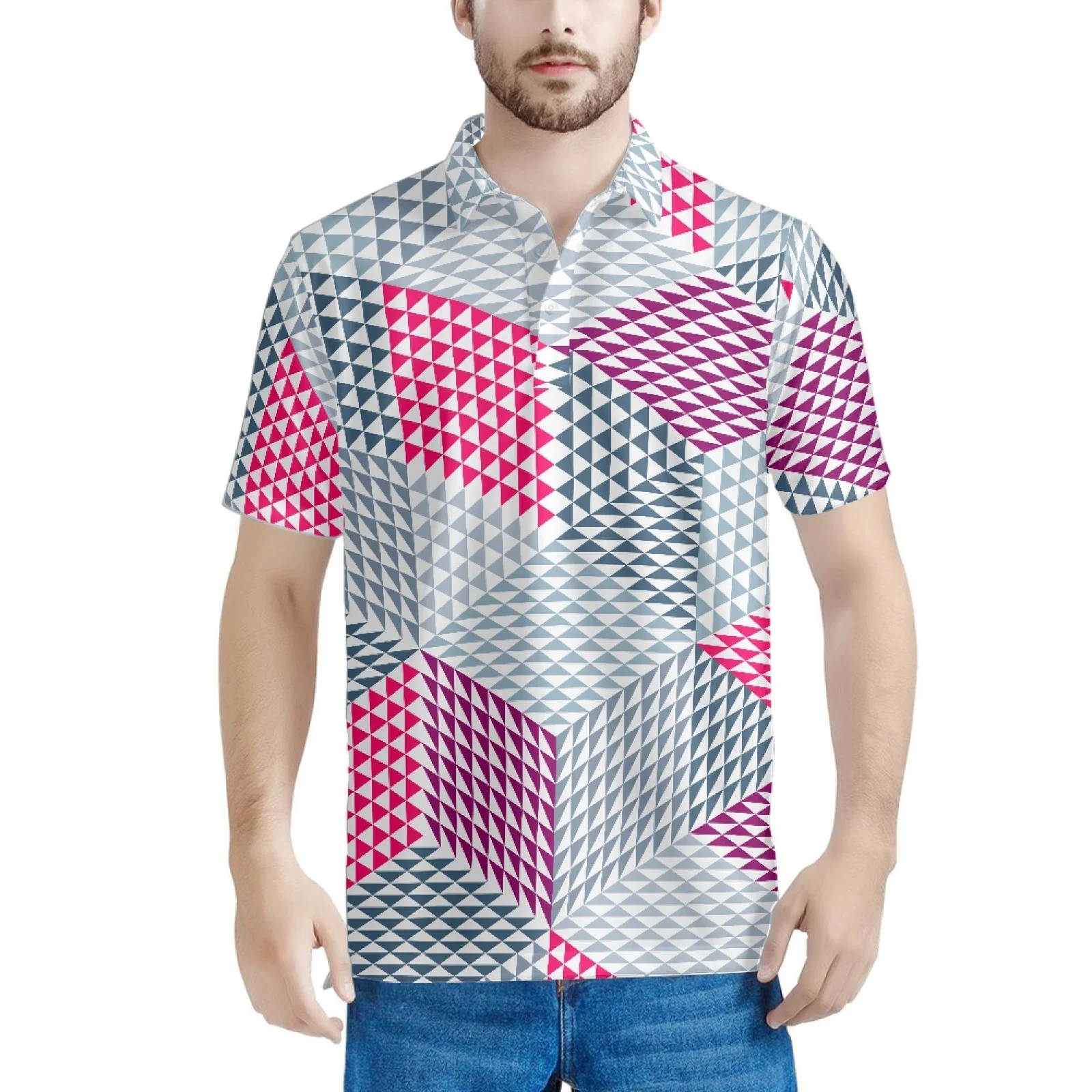 Мужская приталенная рубашка-поло, Повседневная рубашка с геометрическим рисунком, в полоску, с разноцветными узорами, с воротником-стойкой,...