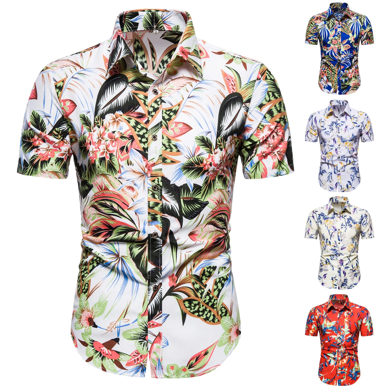 Мужская приталенная рубашка с цветочным принтом, Повседневная Гавайская пляжная рубашка с короткими рукавами, базовые Топы с цветами, нови...