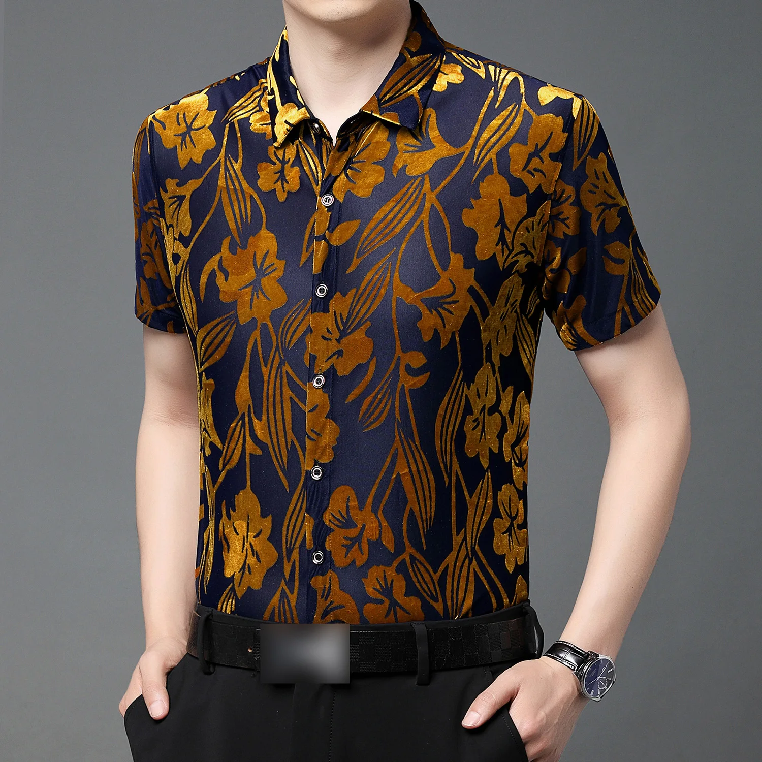 Мужская прозрачная дышащая сетчатая рубашка с коротким рукавом и цветочным принтом