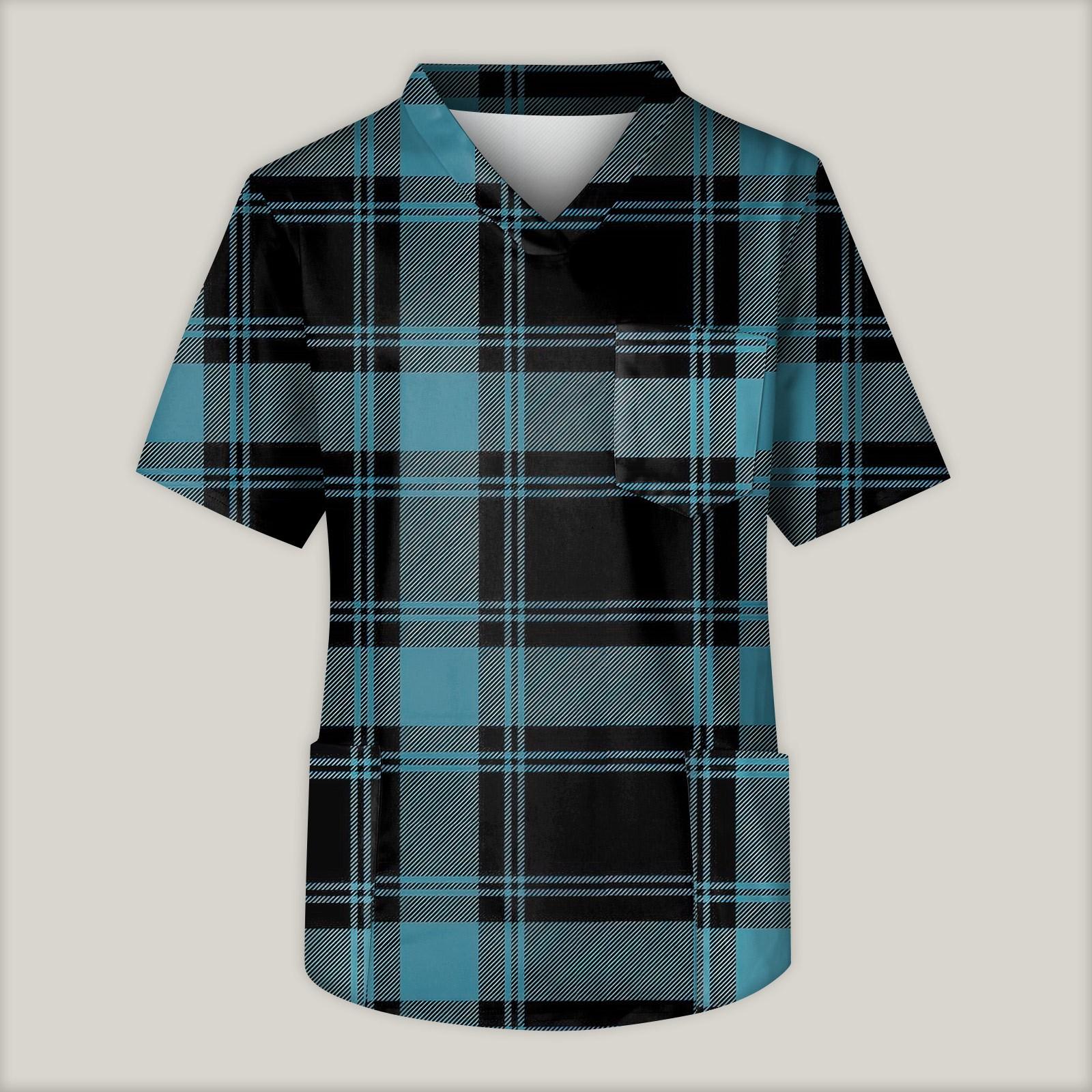 Мужская рабочая блузка с короткими рукавами и v-образным вырезом с принтом, топ с нагрудным карманом XXXXL циан