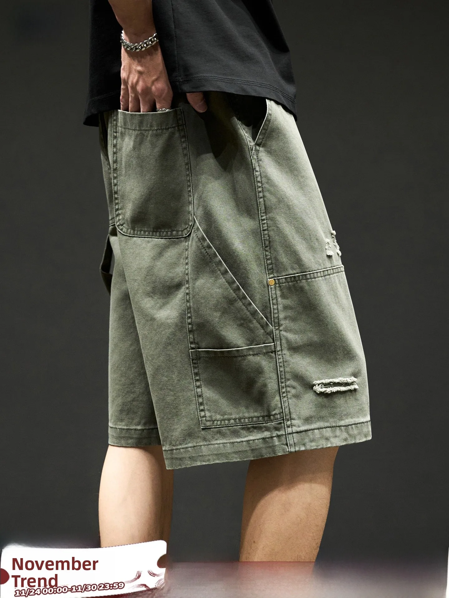 Мужская рваная прямая нога, пять дюймов, летняя тонкая повседневная рабочая одежда, хлопковая дышащая удобная модная военная одежда