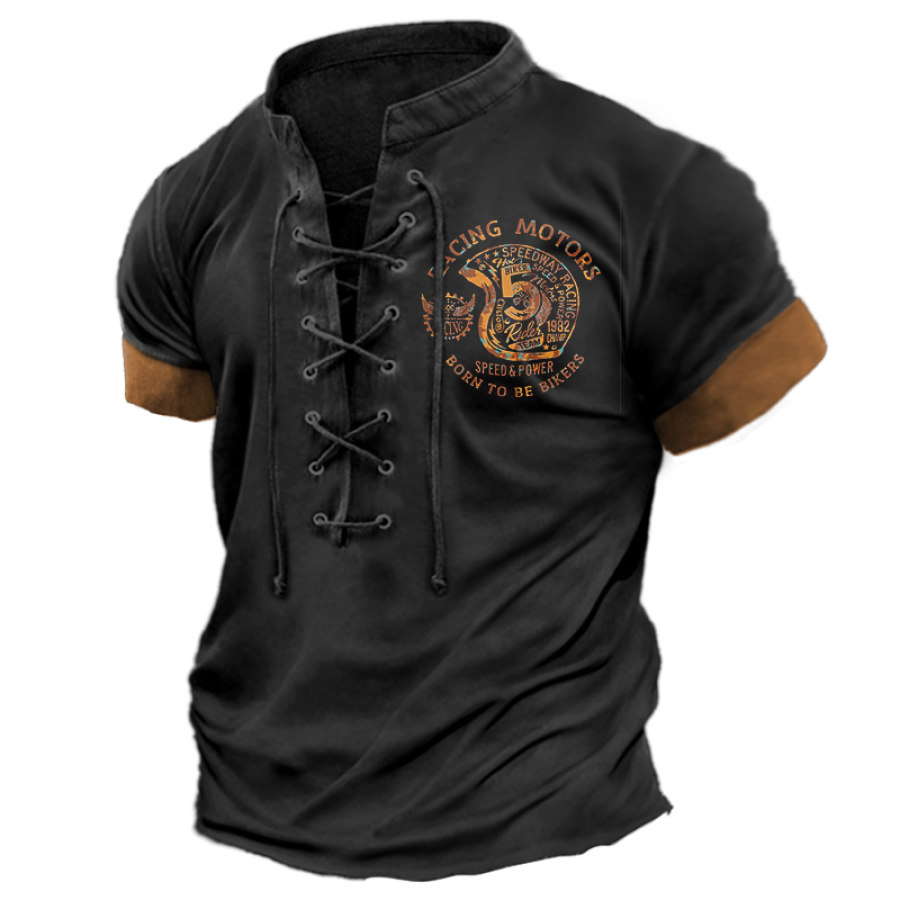 t-shirts,мужская ретро мотоциклетный шлем с принтом на шнуровке с цветными блоками и короткими рукавами футболка