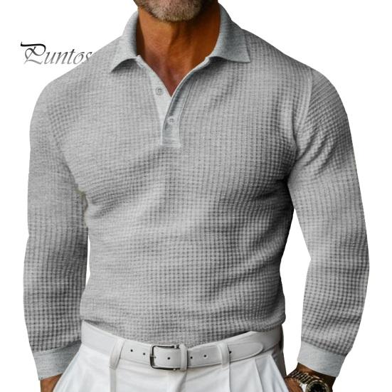 Мужская рубашка весна-осень с отложным воротником на пуговицах с вафельной текстурой, длинными рукавами, однотонная, приталенная, свитер, повседневная одежда для свиданий M светло-серый