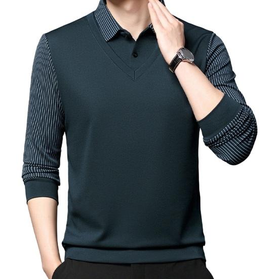 Мужская рубашка в деловом стиле с отложным воротником на подкладке из двух частей, осень-зима XXL темно-синий