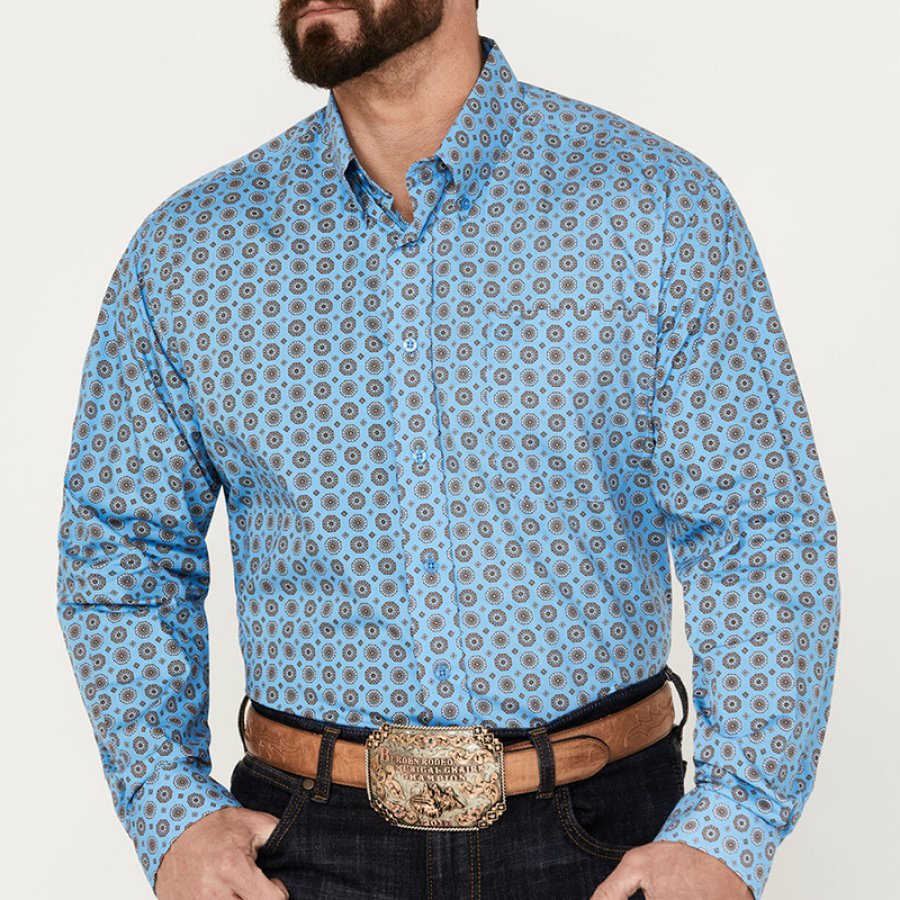 t-shirts,мужская рубашка в стиле вестерн с длинным рукавом и принтом на пуговицах sheplers