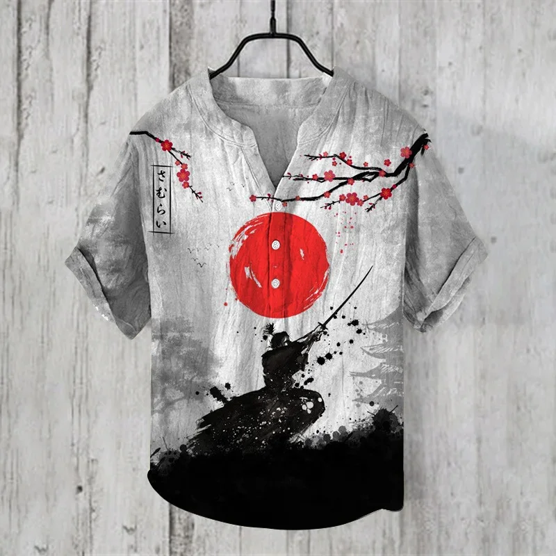 Мужская рубашка в стиле ретро, с V-образным вырезом и коротким рукавом