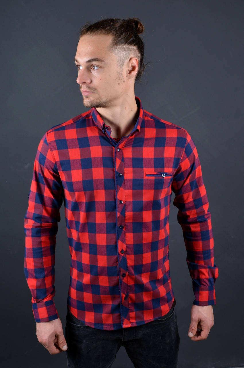 Мужская рубашка красная в клетку Турция 1001, Красный