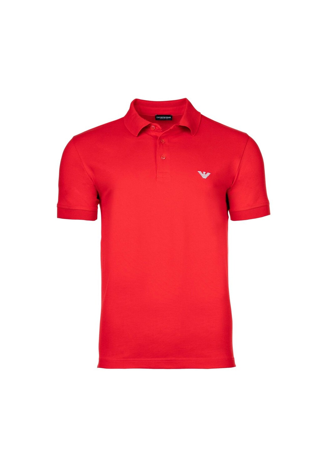 Мужская рубашка-поло - ВЫШИВКА ЛОГОТИПА, короткий рукав, пике, эластичный хлопок EMPORIO ARMANI, красный
