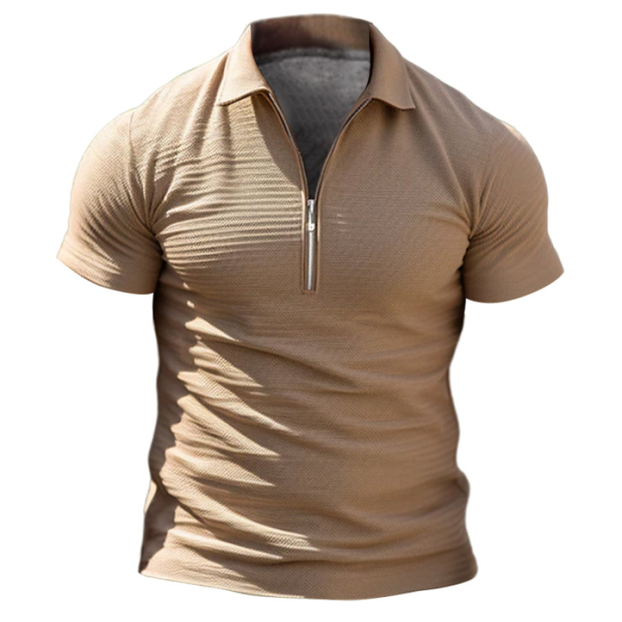 t-shirts,мужская рубашка поло на молнии 1/4 повседневная однотонная летняя футболка с отворотом для отпуска и коротким рукавом