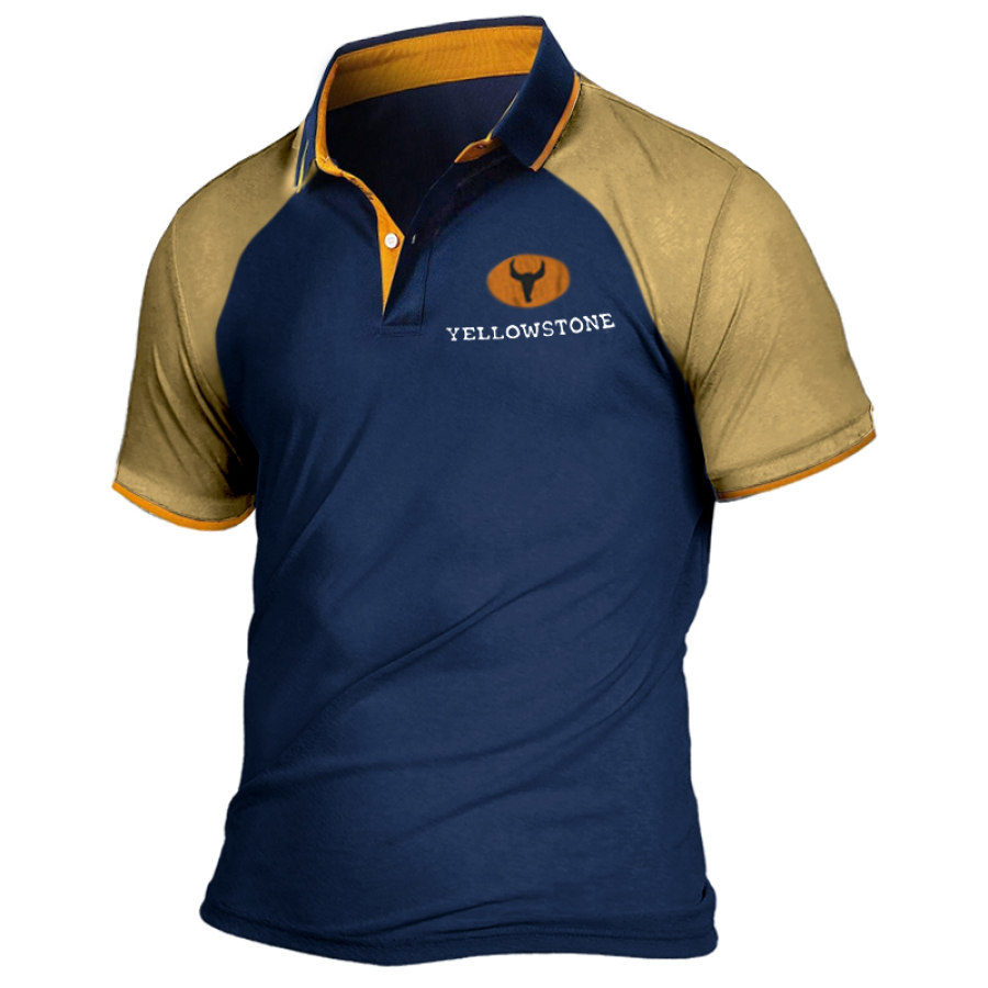Мужская рубашка поло с контрастной отделкой из Йеллоустона повседневная однотонная футболка с короткими рукавами и лацканами реглан