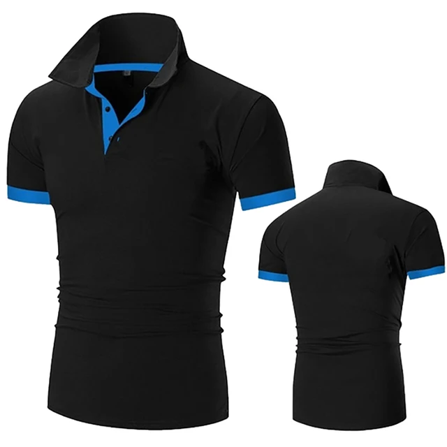 Мужская рубашка-поло с коротким рукавом, повседневная однотонная Свободная рубашка-поло с воротником-стойкой, лето 2023
