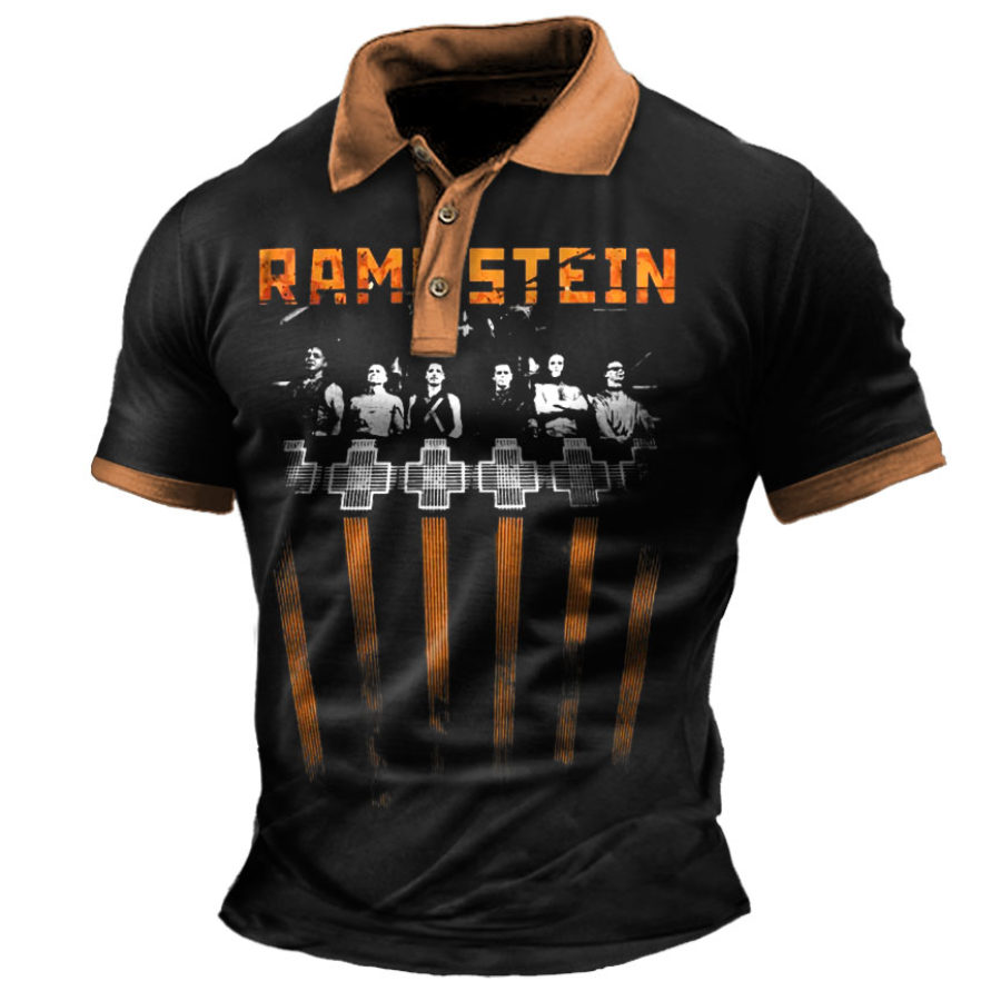 Мужская рубашка поло Rammstein Rock Band Винтаж Открытый с цветными блоками Летние повседневные топы с короткими рукавами