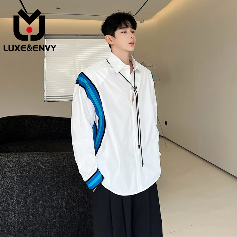 Мужская рубашка с длинным рукавом люкс & ENVY, повседневная однобортная рубашка контрастных цветов с соединением, лето 2023