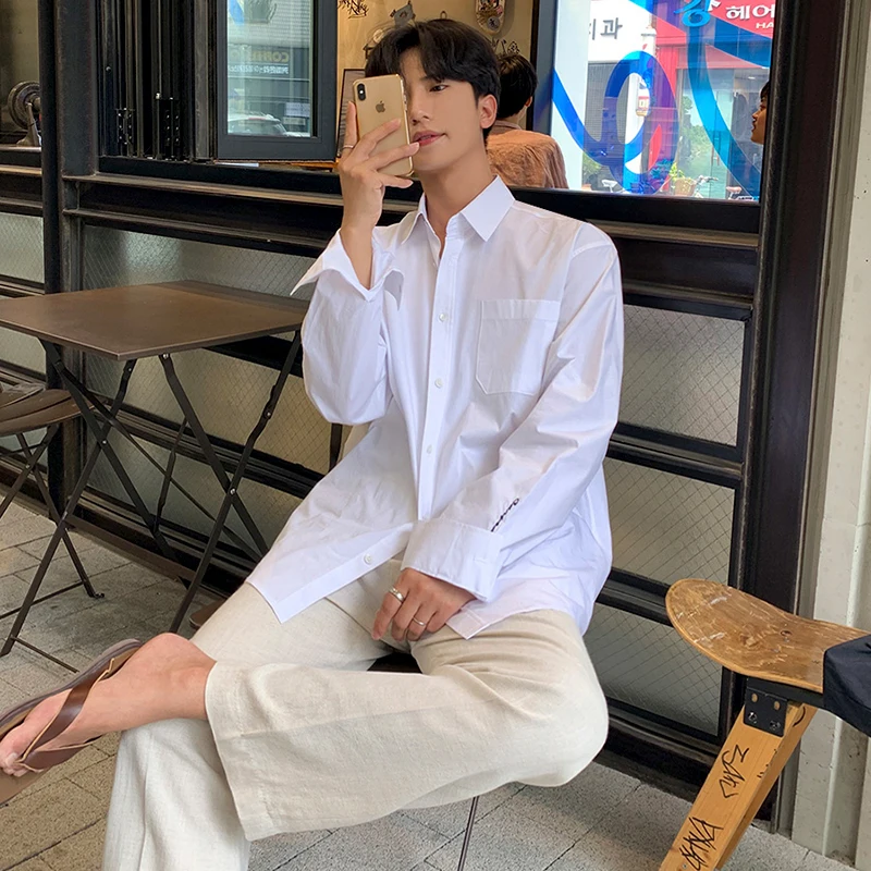 Мужская рубашка с длинным рукавом, повседневная Однотонная рубашка в британском стиле, модель T29, 2023