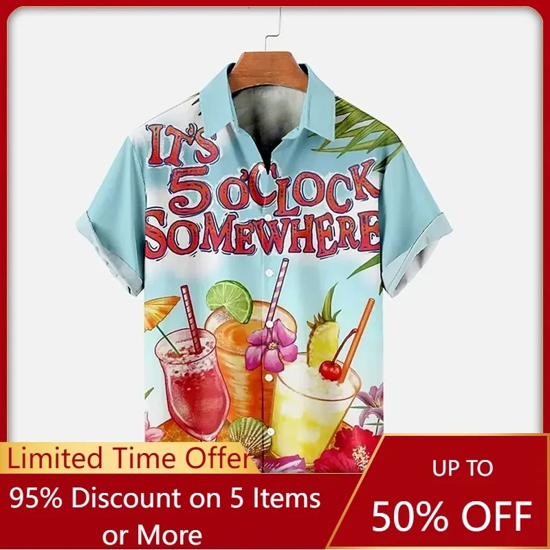 Мужская рубашка с коротким рукавом, летняя гавайская рубашка с графическим принтом