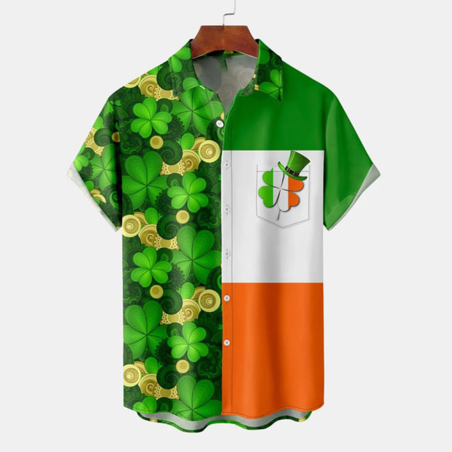 t-shirts,мужская рубашка с коротким рукавом на день святого патрика ирландский флаг гавайский трилистник летние каникулы