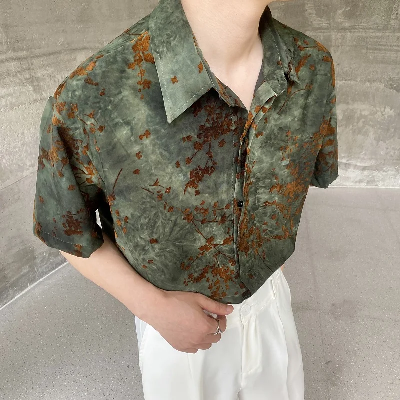 Мужская рубашка с коротким рукавом SYUHGFA, однобортная Повседневная рубашка в китайском стиле с трехмерным жаккардовым отложным воротником, лето 2024