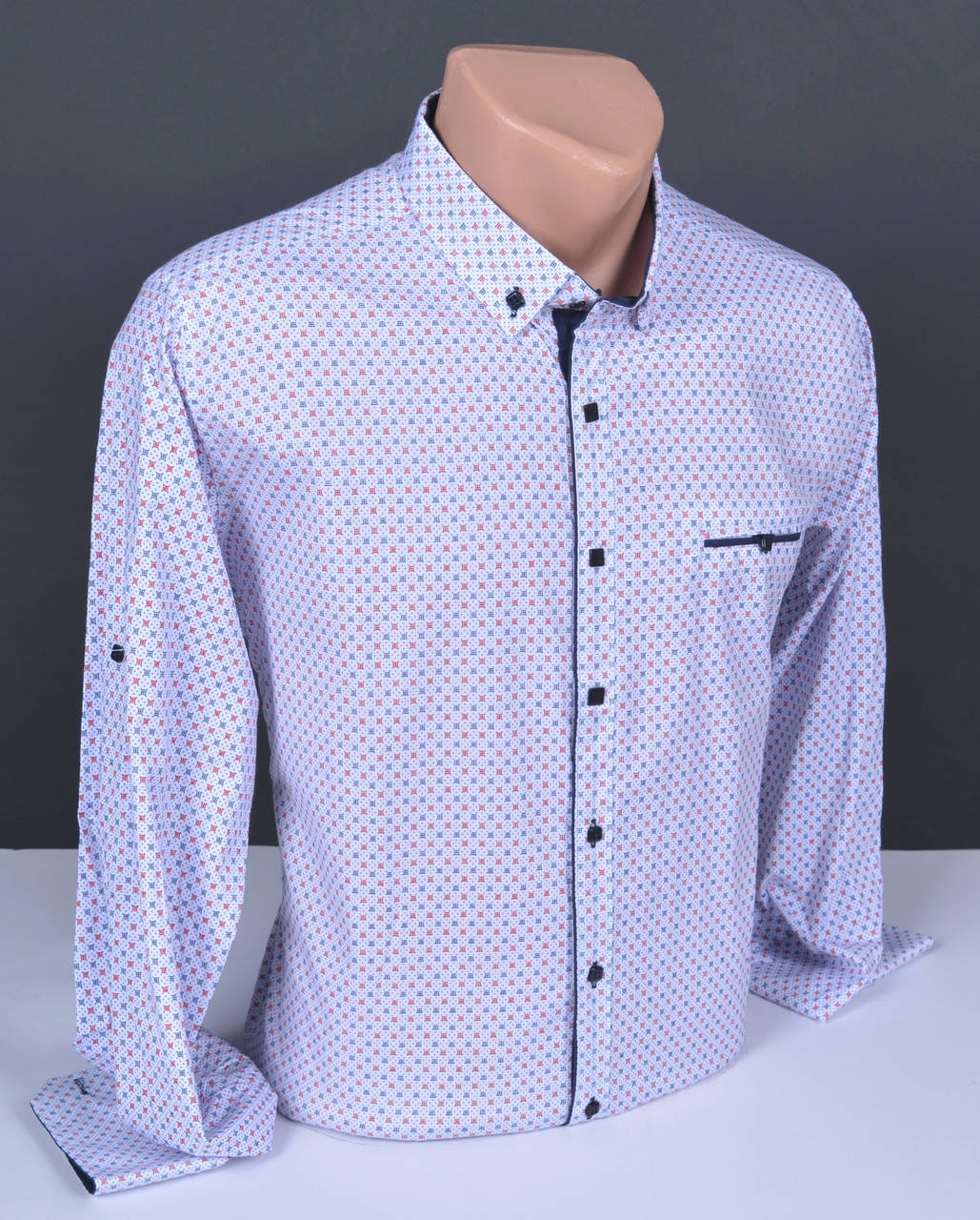 В состав рубашек входит 95% хлопка и 5% стрейча. Изделие хорошо тянется и не сковывает движений, аккуратно садится по фигуре и практически не мнётся при носке. Мужские рубашки имеют стильный крой, и комбинированные застёжки: кнопки – пуговицы. Рубашка сочетается как с джинсами, так и с брюками. Идеально подходит для повседневного стиля, а так же для торжественных событий.