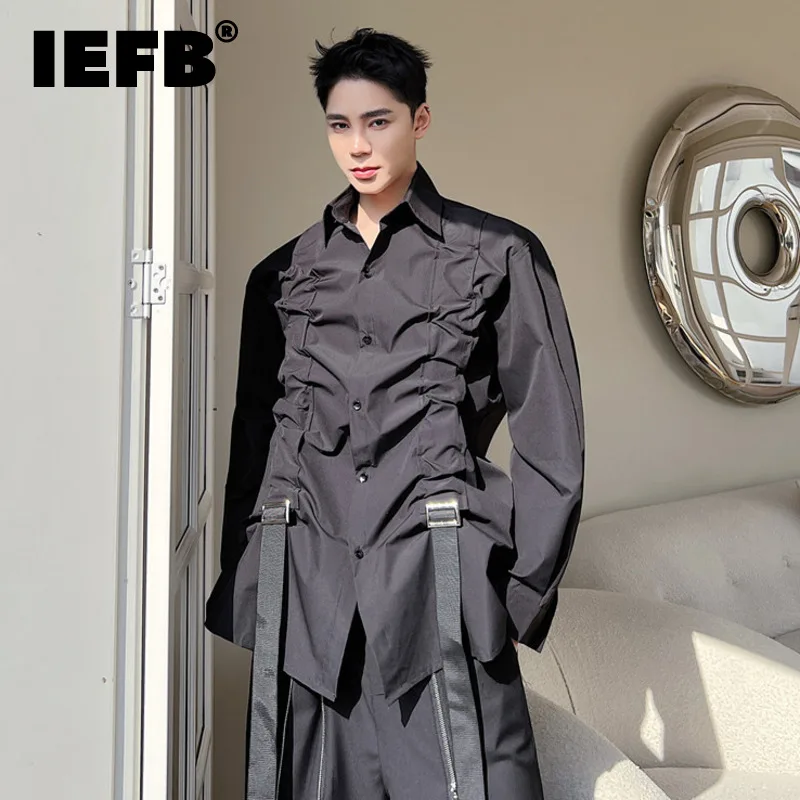 Мужская рубашка IEFB в темном стиле с длинным рукавом, Индивидуальная модель 2023, новый модный кардиган в Корейском стиле, стиль сафари 9A7215