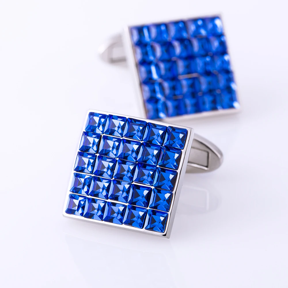 Мужская рубашка Kflk, модная синяя запонка с кристаллами, роскошный подарок на свадьбу, на пуговицах