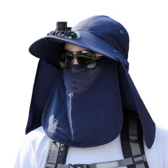 Мужская рыбацкая шляпа, охлаждающий вентилятор, капюшон, полная защита, защита от ультрафиолета, дышащая, с широкими полями, вентиляция темно-синий
